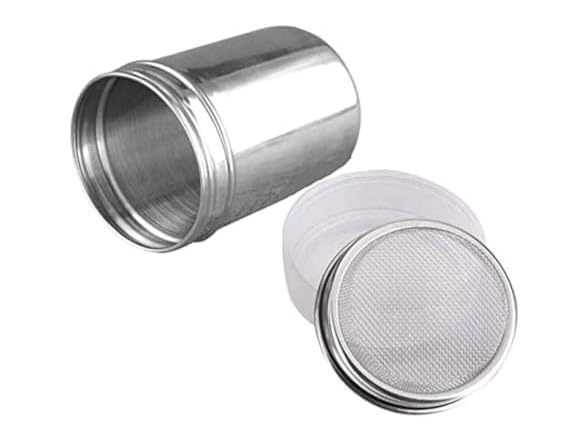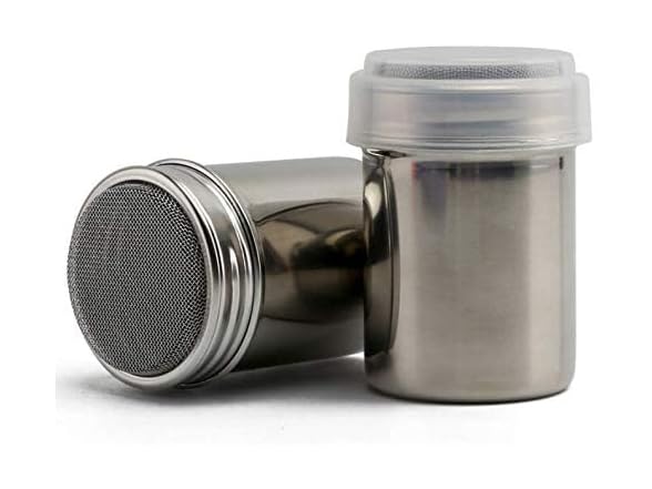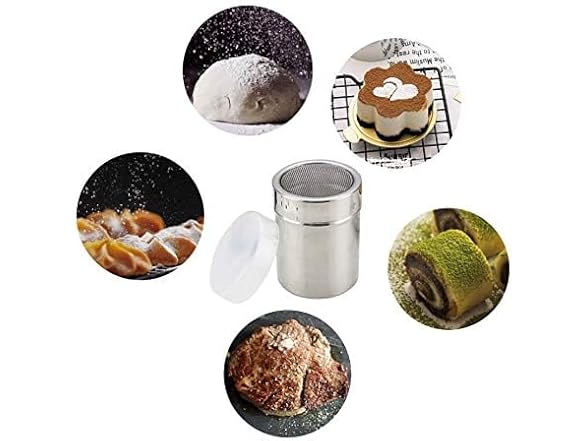 LASSUM Powder Sugar Shaker with Fine-mesh and Plastic Lid Stainless Steel Chocolate Shaker Icing Sugar Powder Cocoa Flour Coffee Sifter Cooking Tools