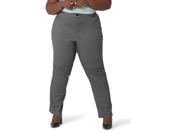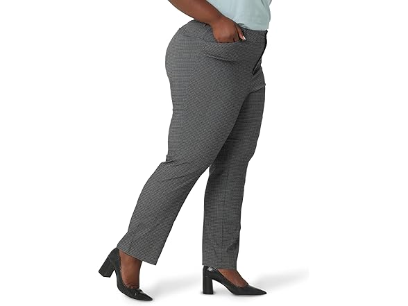 Lee Women's Size Wrinkle Free Relaxed Fit Straight Leg Pant, Black/White Rockhill Plaid, 18 Plus Long