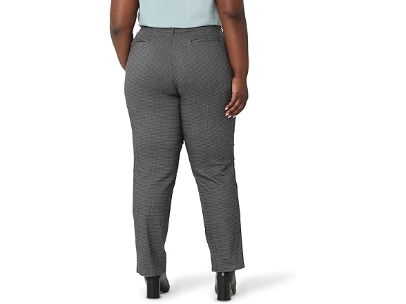 Lee Women's Size Wrinkle Free Relaxed Fit Straight Leg Pant, Black/White Rockhill Plaid, 24 Plus Petite