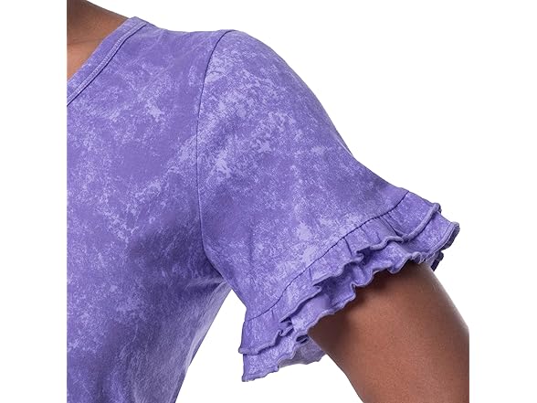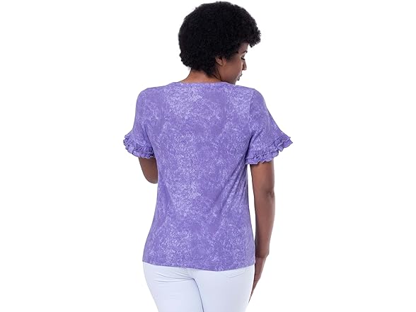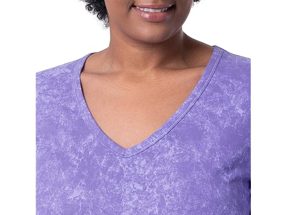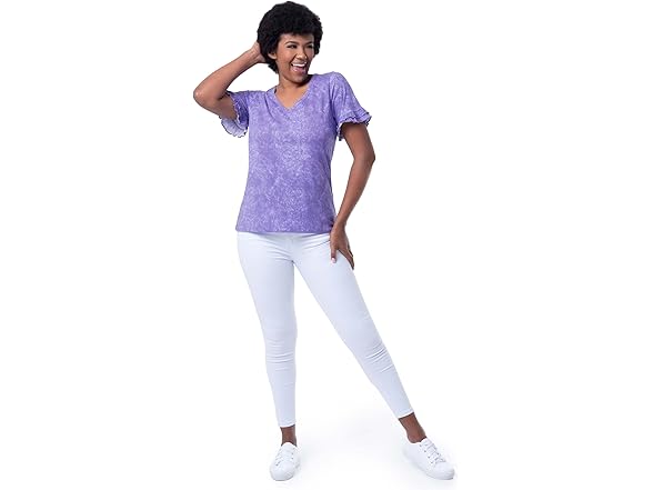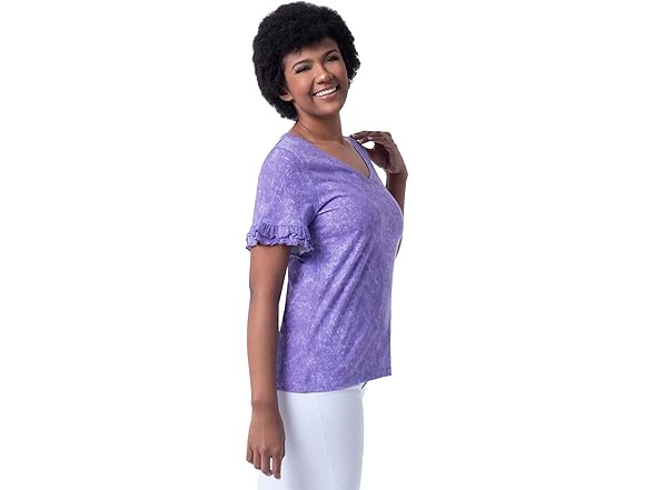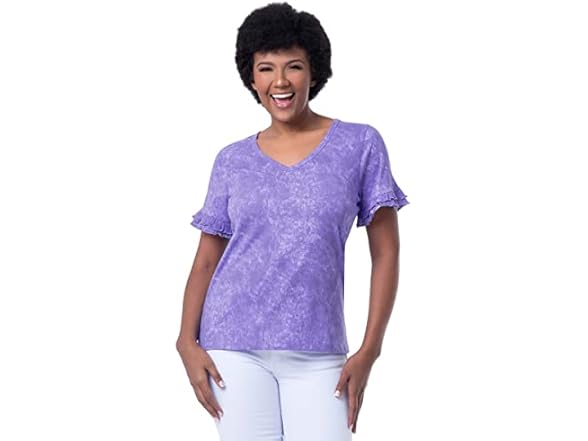 Lee Women's Cotton Ruffle Short Sleeve V-Neck T-Shirt, Violet, 1X