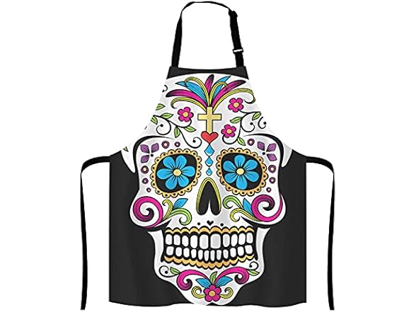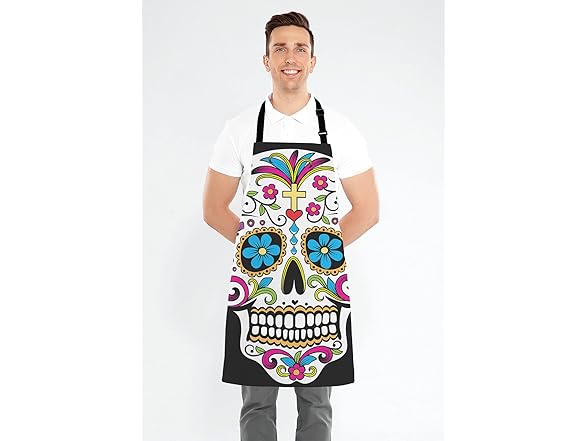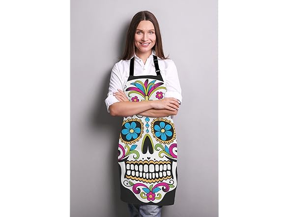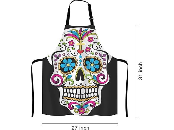 Lefolen Funny Apron for Women and Men,Sugar Skull Adjustable Kitchen Chef Apron for Cooking Baking - Cute Birthday, Anniversary, Mother's Day Apron Presents for Mom Wife Girlfriend Aunt Grandma