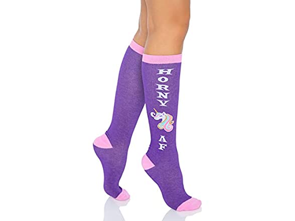 Leg Avenue womens High Casual Party Leg Avenue Lick Me Knee Socks, Purple, One Size US