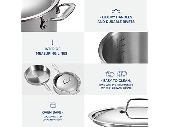 - Reimagined from core out, our copper-core stainless steel cookware combines the epitome in rapid heating, heat retention, and cooking stability.