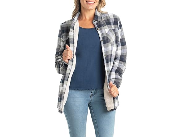 Legendary Whitetails Women's Plus Size Flannel Shacket Sherpa Lined Shirt Jacket Warm Fleece, Glacier Bay Plaid, 1X