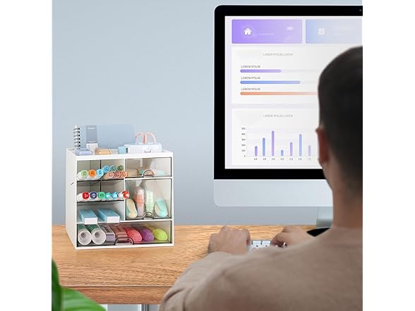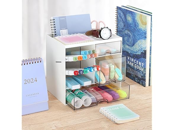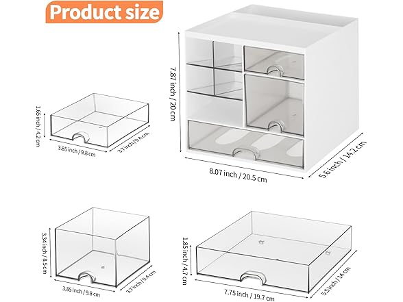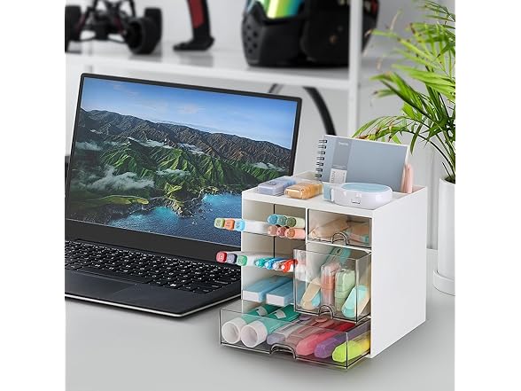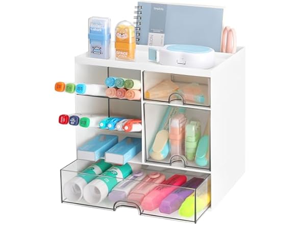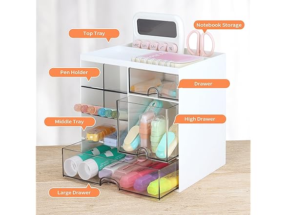 LETURE Multifunction Desk Organizer with Drawers, Desktop Storage Drawers for Office Supplies, Plastic Desk Storage Stationary Organizer, Cosmetic/Makeup Vanity Organizer (White)