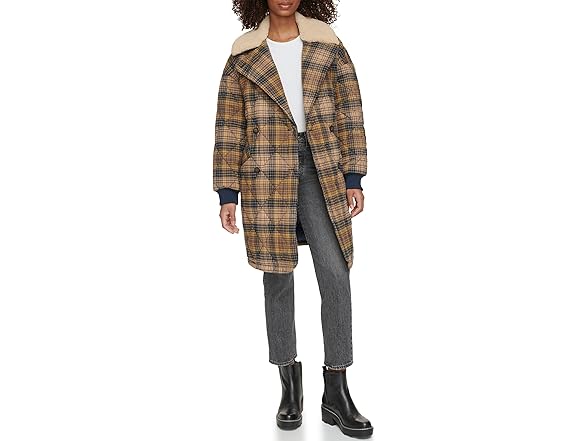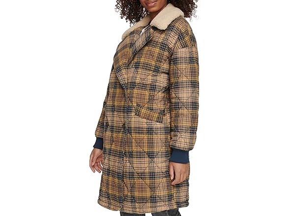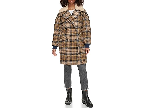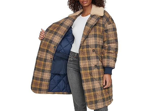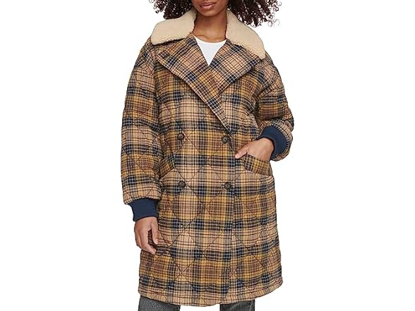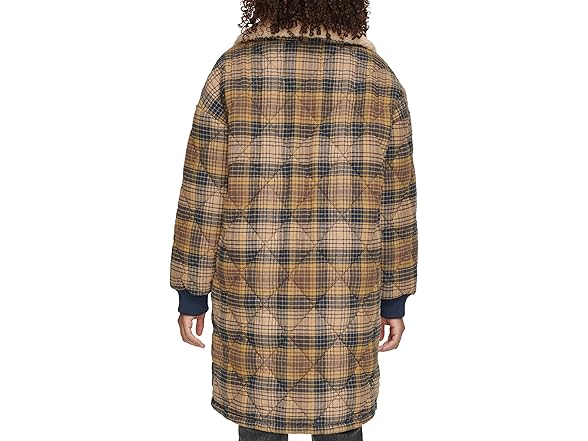 Levi's Women's Quilted Cocoon Coat, Plaid Brown, X-Large