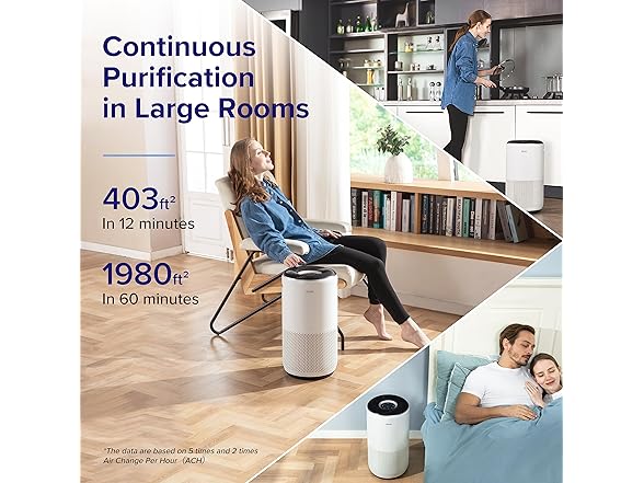 - LARGE COVERAGE: The top-performing Levoit Core 400S Smart Air Purifier can purify large rooms, such as bedrooms, living rooms, kitchens, and basements. Purify a 403 ft² room 5x per hour and a 1980 ft² room 1x per hour