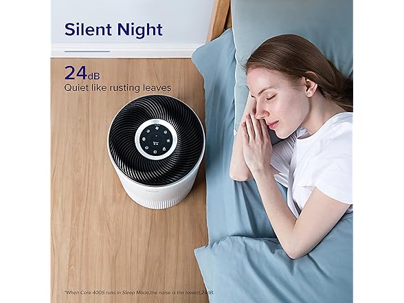 - WHISPER-LEVEL QUIET: Keep the Core 400S running throughout the night, as Sleep Mode uses the lowest fan speed (24dB) to create a sleep-friendly space that’s as quiet as falling leave