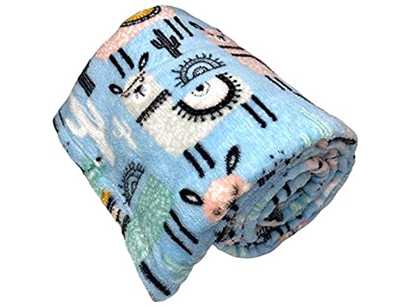 JustHome Fun Print Soft Cozy Lightweight 50 x 60 Fleece Throw Blanket (White with Llamas and Cactus)