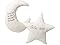 - The star measures approximately 11.25 inches in height by 12 inches in width and is 2.75 inches thick. The moon measures approximately 11.25 inches in height by 10.5 inches in width and is 3.25 inches thick.
