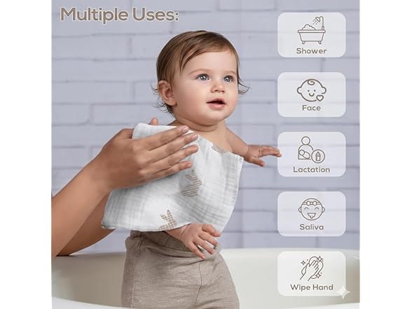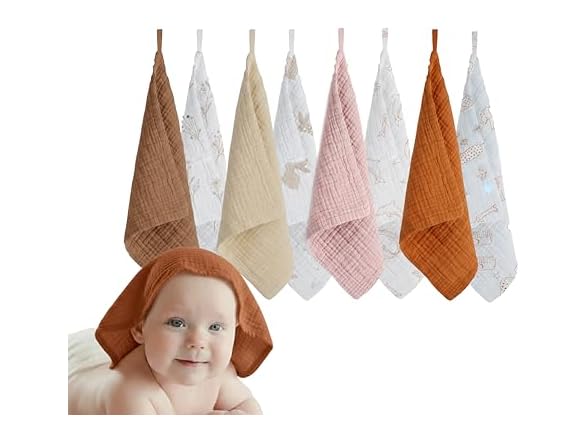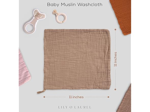 LILY O LAUREL Muslin Baby Washcloths for Newborns, Pack of 8, 11"x11", Super Soft Cotton, Absorbent and Gentle, Baby Cotton Wipes, Baby wash Cloths