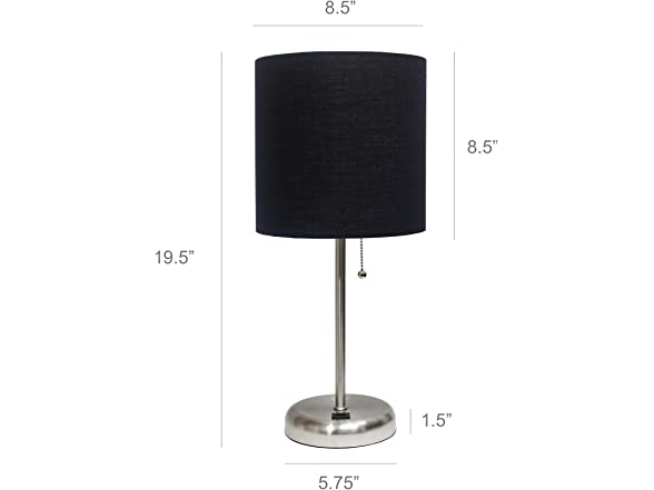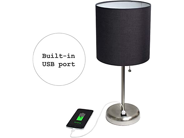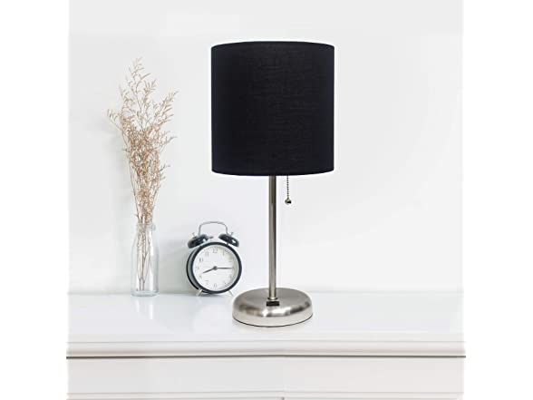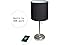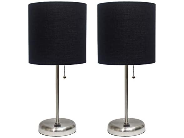 Limelights LC2002-BLK-2PK Brushed Steel Stick Lamp with USB Charging Port and Black Fabric Shade 2 Pack Table Desk Lamp Set