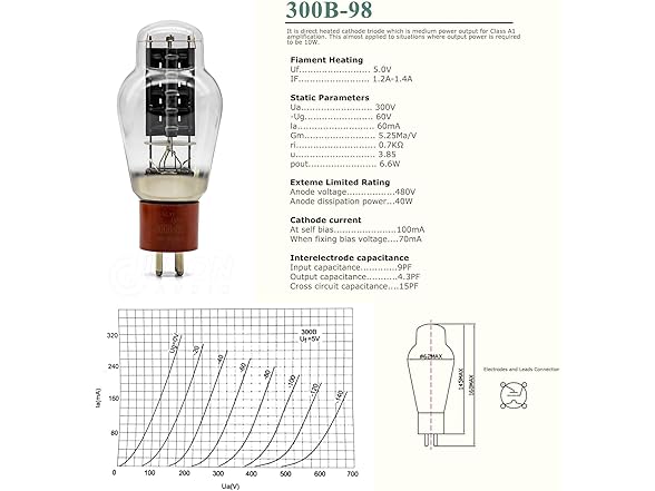 LINLAI 300B 1 Pair Vacuum Hifi Valve Electronic Tube for Class Pairing Audio Amplifier Replaced 10W Power Amplication (300B-98)