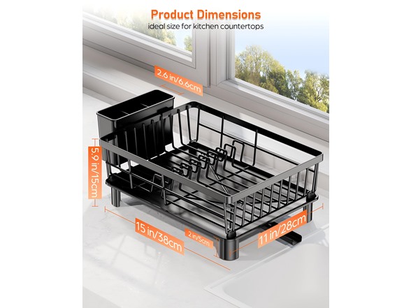 【Multifunction, Space Saving】LIONONLY dish drying rack features a considerate design, which can store different types and sizes of cookware such as cups, bowls, dishes, kitchen pots and pans and frying pans. Size - 11"D x 15"W x 5.9"H. (Manual measurement with slight error) Save at least 50% of kitchen space Make your kitchen look bright and clean.