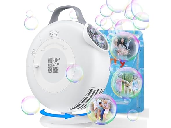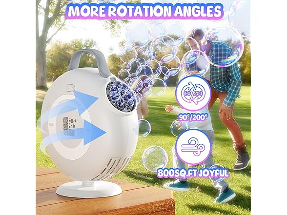 - 【Automatic Oscillating Bubble Machine】Step into a world of whimsy and wonder with our bubble maker machine! Imagine being the maestro of a magical bubble symphony, creating many bubbles and directing them to 90°/200° oscillating. Picture the delight on children's faces, the laughter echoing in the air, and the sheer joy that bubbles bring to any occasion, create memories that glisten like the very bubbles you unleash. Let the bubbly adventure begin!