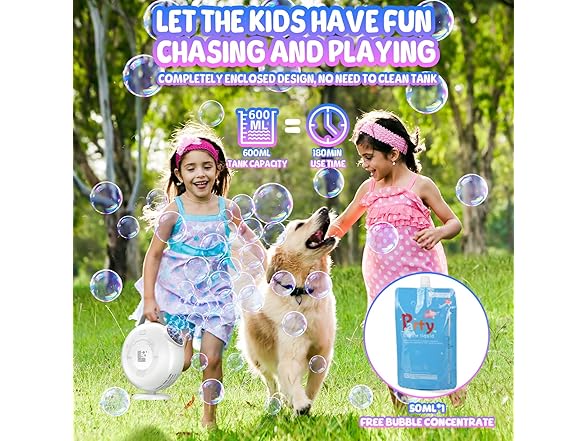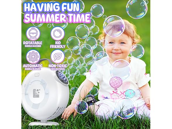 - 【The Best Party Gift for Kids】Elevate festivities with this bubble machine, creating an endless stream of fun and a dreamlike ambiance. Great for weddings, birthdays, outdoor gatherings, and more, it's a wonderful outdoor toy and a delightful gift for toddlers, kids, and even pets. Capture the joy – get this bubble machine for your little ones now!
