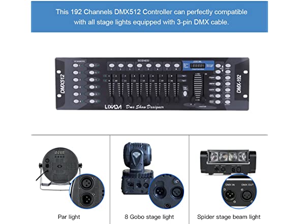 Lixada 192 Channels Controller Console for Stage Light Party DJ Disco Operator Equipment