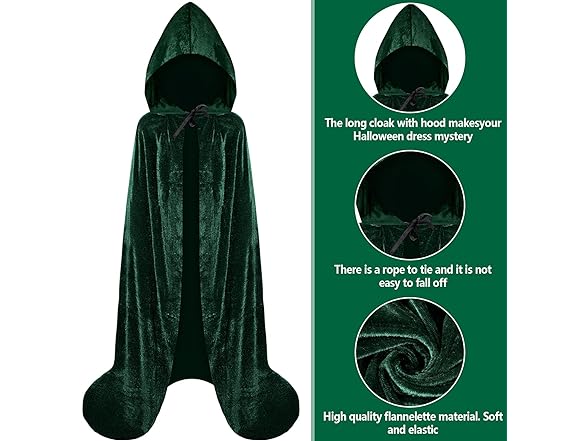 - Design Features: the kids adults long hooded cloak is tied around the neck with a short cord, so it is not easy to loosen; The velvet cloak cape with hood makes your Halloween or role playing party mysterious for both boys and girls, women and men