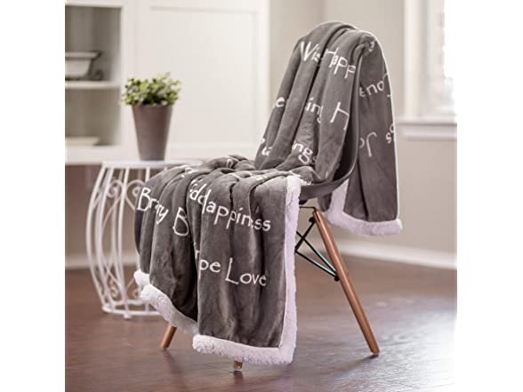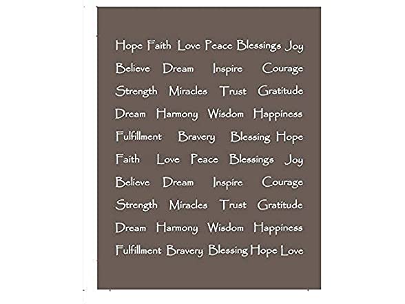 - MESSAGE & WORDINGS: The words beautifully written out on this blanket include: Harmony Hope Faith Love Peace Blessings Joy Believe Dream Inspire Courage Strength Miracles Trust Gratitude Dream Wisdon Happiness Fulfillment Bravery Blessings