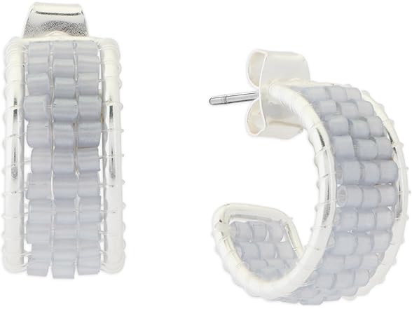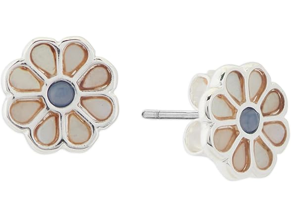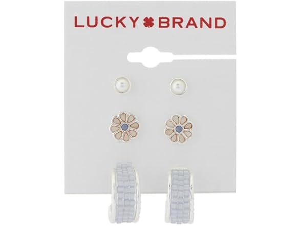 Lucky Brand Women's Inlay Daisy Stone Earring Trio, Silver, Unsized