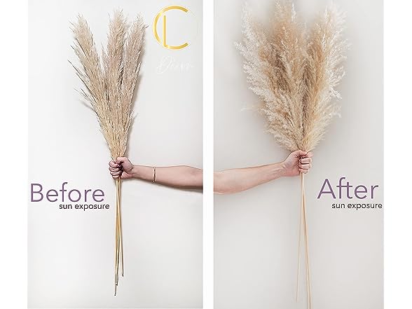 - POMPOUS GRASS: For fluffy feathers, place under the sun for a few hours. The longer the plants are exposed to sun, the fluffier they will get.