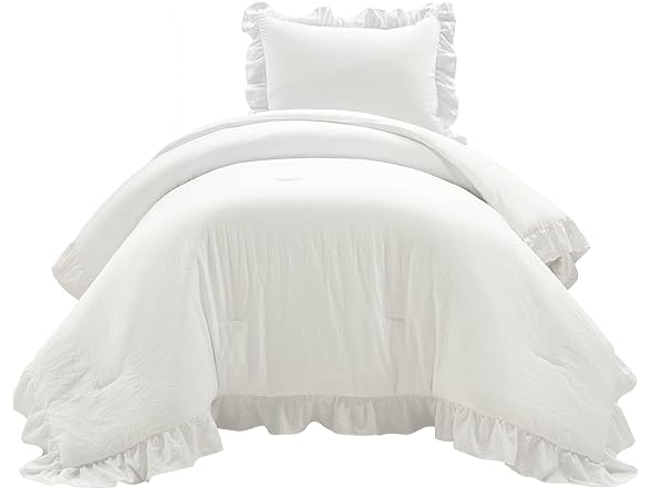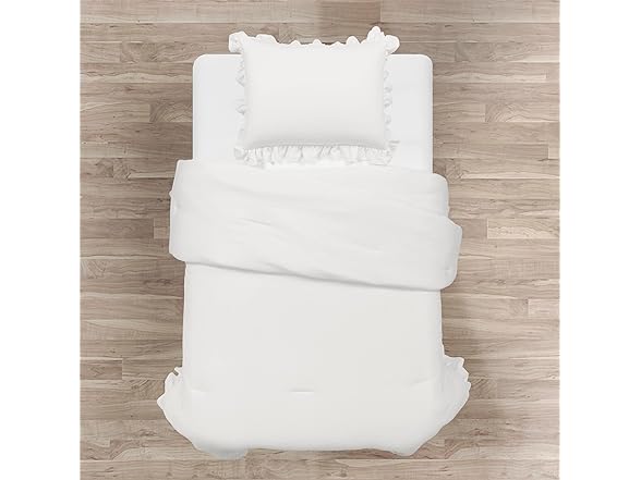 - Complete Bedding Set: This 2 piece twin-xl bedding set includes: 1 comforter 68" W x 92" L + 4" ruffle, and 1 standard pillow sham 26" W x 20" L + 2.5" ruffle. Once you style this comforter set you'll never want to get out of bed. It's really that cozy!