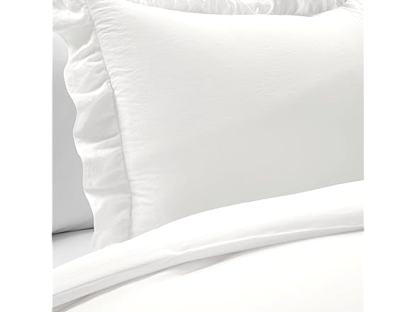 - Charming Bedding Set: Our soft Reyna Ruffle Comforter Set features a frilly ruffled border which will brighten any bedroom. This solid colored textured set is easy to style and perfect for lovers of minimalist, farmhouse, cottage or vintage design styles.