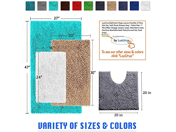 - EXTRA SOFT 2-PIECE BATH RUG MAT SET: Cushion those cold bathrooms tiles with LuxUrux’s luxuriously soft 1’’ high after-bath mat rug set. Our mat is designed to fit around your commode and the other one is a versatile rectangle. Making it Perfect for master bathroom, kids bathroom, vanity, guest suite. Great gift idea for all occasions, Christmas, Wedding, Fathers Day, Mothers Day, Valentines, Birth Day & Etc.
