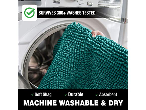 - MACHINE WASHABLE: Both the chenille microfiber and the PVC layer used in the mat are designed to be machine washable to get stains out. unlike other brands where the rubber backing tends to wear and peel off after a number of washes. For best results, wash on cold and lightly tumble dry on low heat.