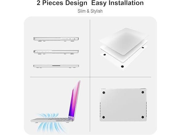 - ✅【Snap on design, easy on easy off】🔄Plug your charger, cable or headset without removing the case.The pictures of the products are based on the real productsDesign lets you open/close your MacBook all the way and access to all ports.