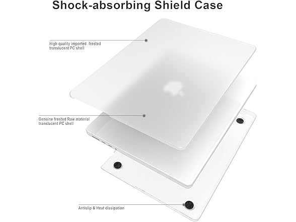 - ✅【Hard Case& With vent】🔄 High-quality PC plastic with high impact strength, wide temperature range, and good dimensional stability(You don't have to worry about the case deforming due to high temperatures). The air vents at the bottom side which is good for heat dissipation while using computer.Fully vented for safe heat disbursement.