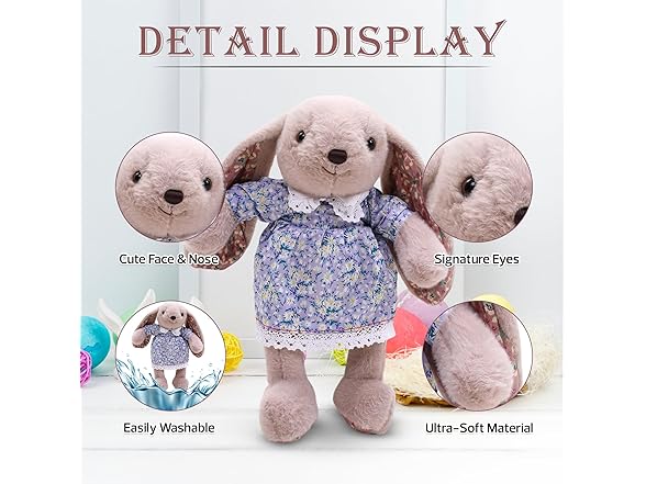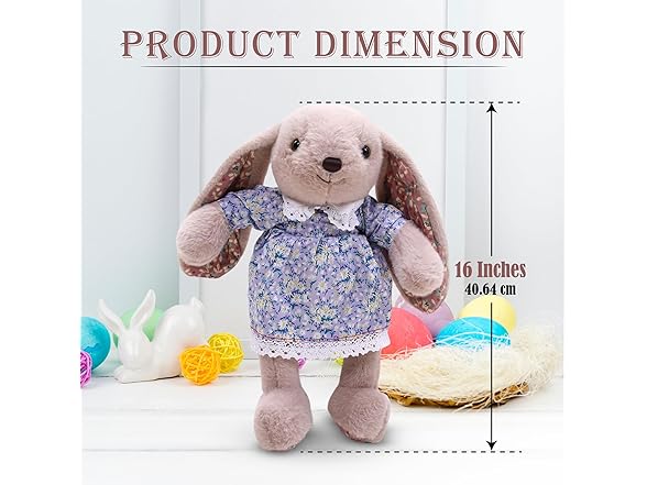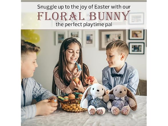 Made By Aliens Floral Easter Bunny Stuffed Animal – Plush Bunny Toy Cute Huggable Rabbit for Kids & Adults on Easter – 16-inch (Beige)