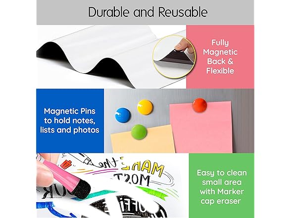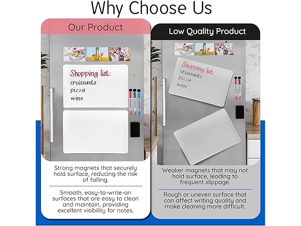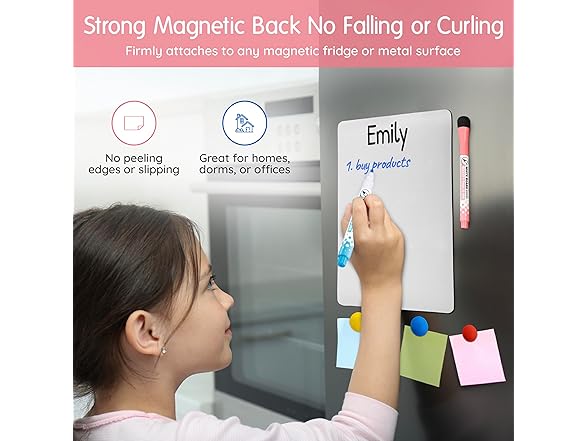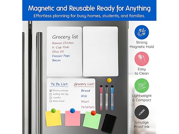 - 【STRONG FULL-MAGNET BACKING】 – Each whiteboard features a thick full-magnet back for maximum grip and stability on any magnetic surface. Easily attaches to fridges, microwaves, dishwashers, metal doors, filing cabinets, and more—without sliding or falling.