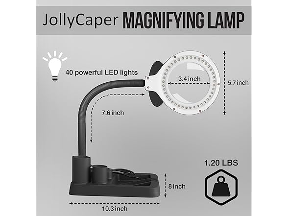 - High brightness and illumination: Our led magnifying lamp comes with 40 LED lights that are very powerful, yet don’t flicke, This desk lamp is ideal for work.