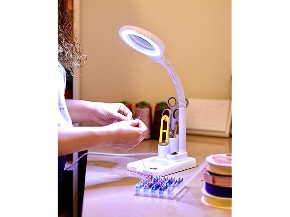 - Multipurpose: This magnifying glass with light and stand is very useful for sewing, electronics repairs, jewelry, painting, needlework, makeup, reading books and newspapers, study, woodwork, arts and crafts, The base stand of this magnifier lamp has little pits to keep screws, nuts, bolts, needles, beads, and other small accessories in place. It ensures that you don’t lose anything.