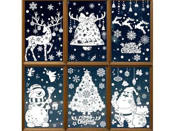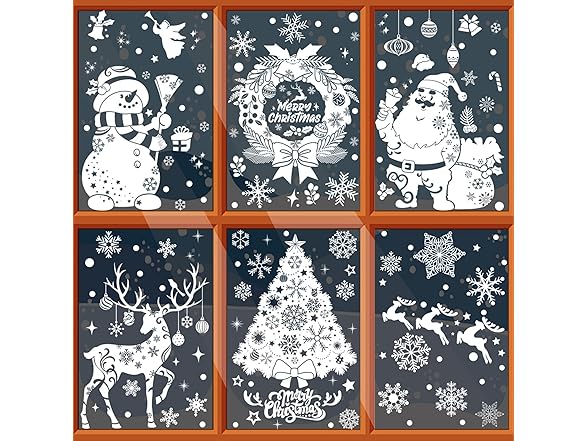 White Christmas Snowflake Window Stickers, 24 Sheets/4Sets - 984PCS Merry Christmas Window Decorations Decals Double Sided Window Clings