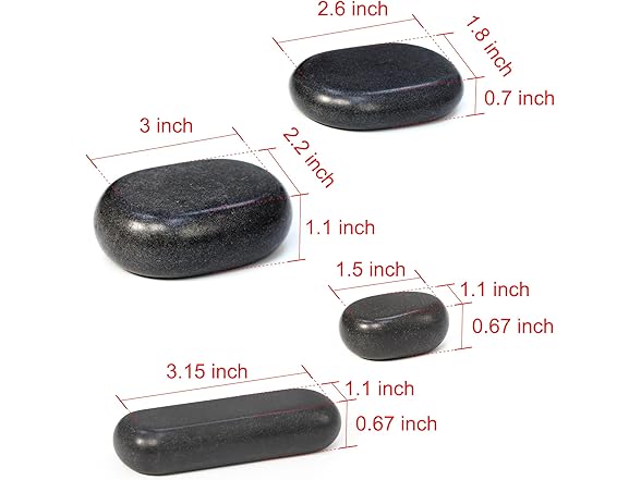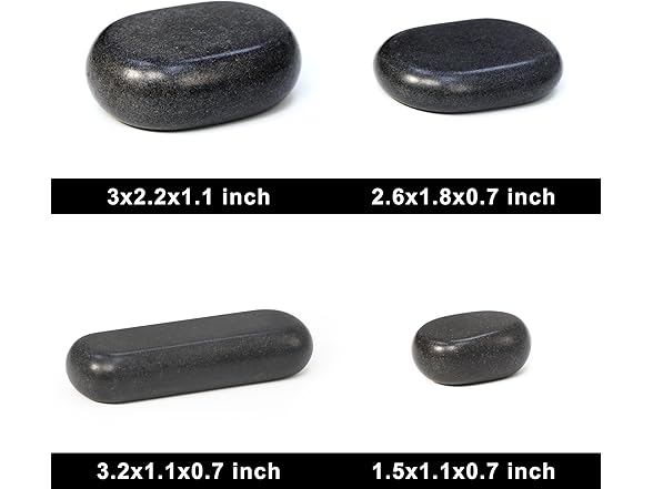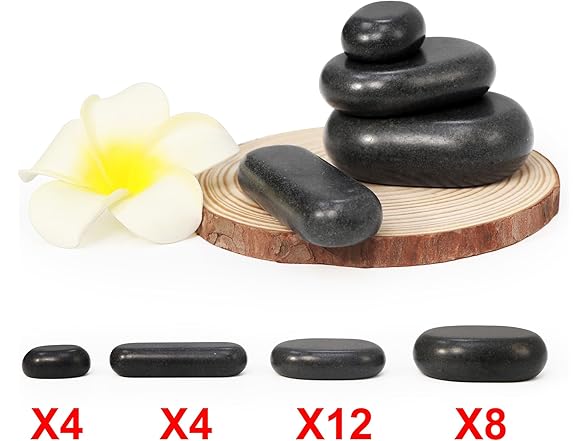 - 👍【Perfect for Targeted Massage Areas】 – Achieve ultimate relaxation with this comprehensive hot stone massage kit. It includes 4 large oval basalt stones, 12 medium flat oval basalt stones, 4 small oval basalt stones, and 4 mini pressure point stones, perfect for targeting common areas like the neck, back, shoulders, arms, legs, and feet.