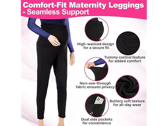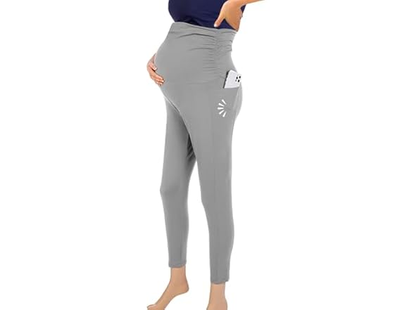SUPPORTSMART Maternity Leggings with Pockets - Over The Belly Pregnancy Active Wear Workout Yoga Tights Pants, Ultra Soft, Non-See Through & Squat Proof, Full Belly Support