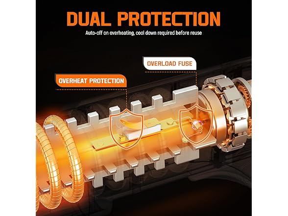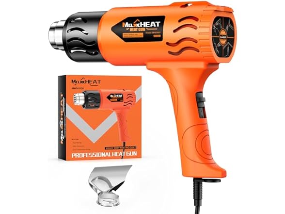- ADVANCED DUAL FUSES PROTECTION: Our heat gun features dual safety fuses. In the event of overheating, the device automatically shuts off and cools down before it can be used again, effectively prolonging the machine's lifespan