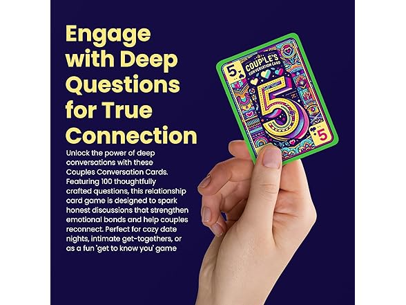 Conversation Cards for Couples ‚ 100 Deep Questions Card Game for Couples to Reconnect ‚Ideal for Date Night, Travel & Stay at Home ‚Thoughtful Gift & Relationship Game