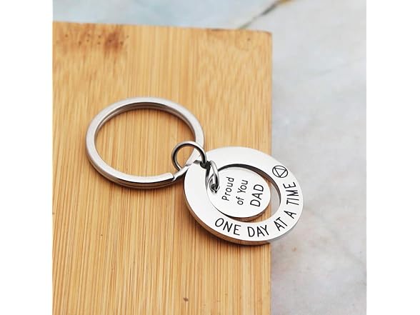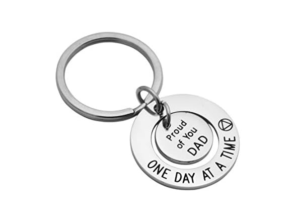 Meibai Sobriety Gift for Men Women One Day At a Time Keychain Proud of You Dad Mom NA AA Addiction Recovery Gifts (Keychain for Dad)