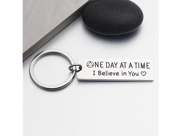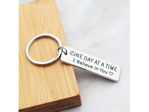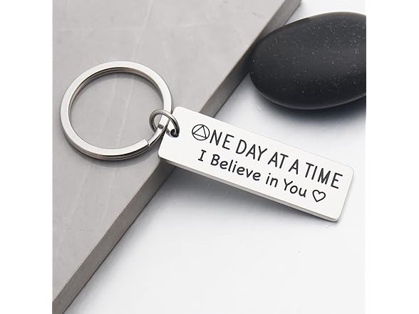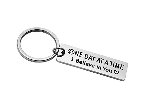 Meibai Sobriety Gift for Men Women One Day At a Time Keychain Proud of You Dad Mom NA AA Addiction Recovery Gifts (Keychain)