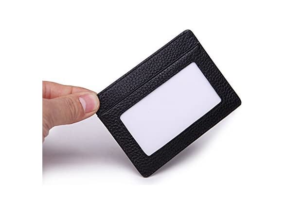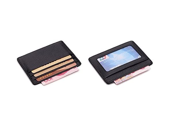 - ULTRA SLIM FRONT POCKET WALLET. The leather card holder is designed to be slim and feels amazingly soft. Sturdy enough to last a long time, its super slim figure (only 0.2 cm/0.08 inches thickness) makes it easy to slide into your front pocket. It is super thin, fits perfect in your pocket and can hold at least 6 cards and some folded cash comfortably.