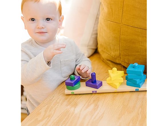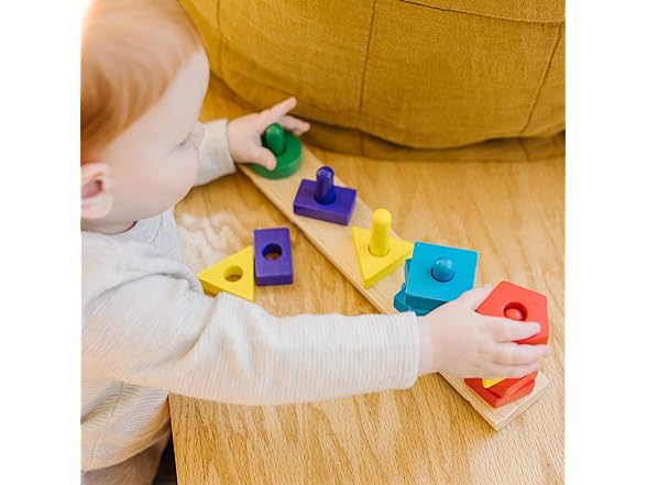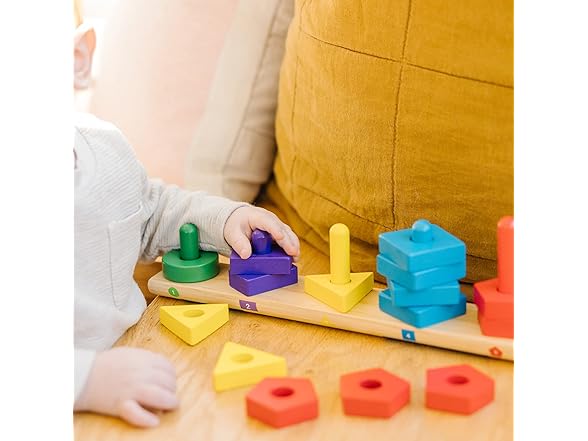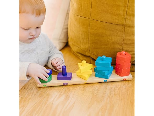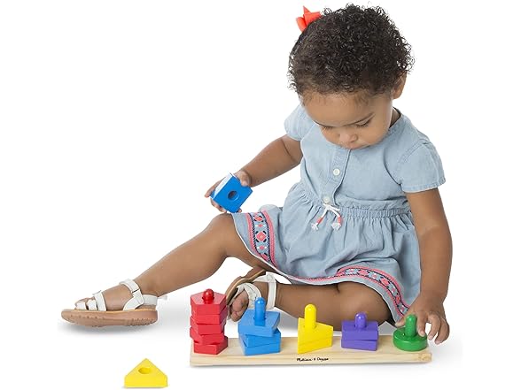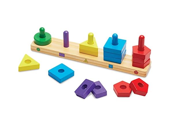 Melissa and Doug Stack and Sort Board - Wooden Educational Toy for age 2+ years With 15 Solid Wood Pieces