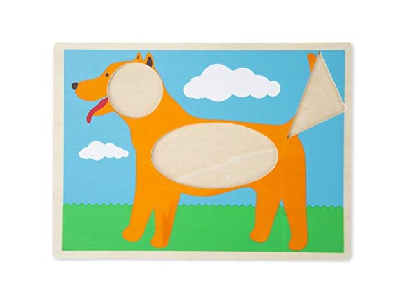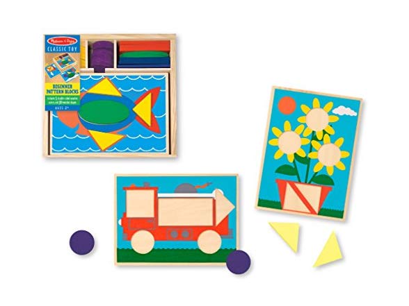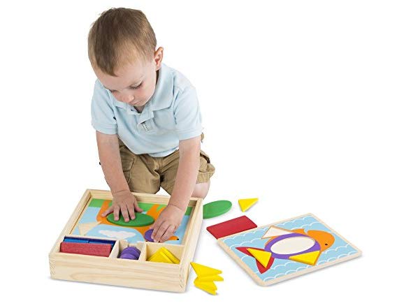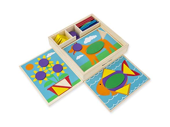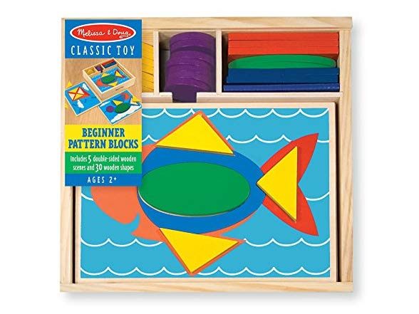 Melissa & Doug Beginner Wooden Pattern Blocks Educational Toy With 5 Double-Sided Scenes and 30 Shapes
