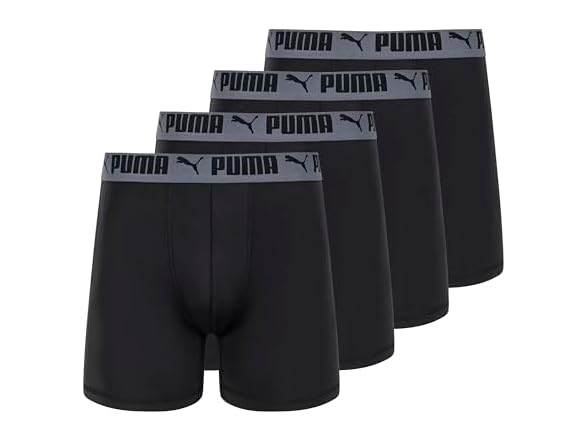 PUMA Men's 4 Pack Active Stretch Boxer Briefs, Black, Small