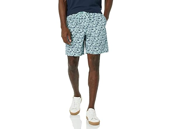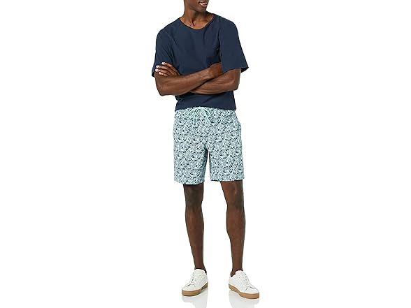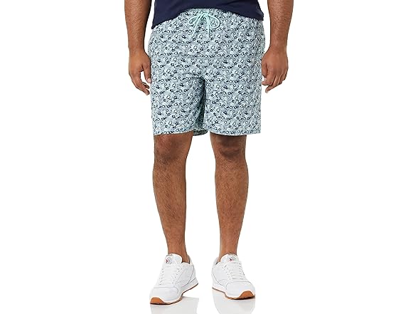 Mens 8 Drawstring Walk Shorts Green Floral (XL)
