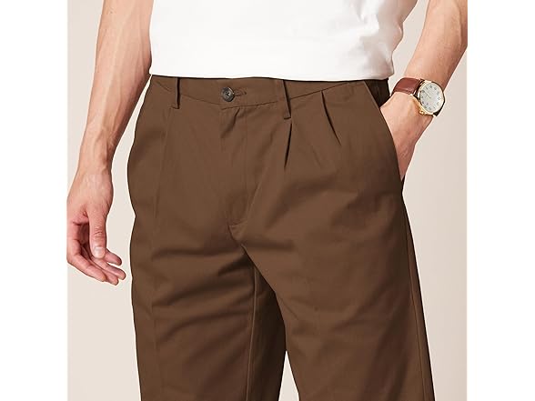 Mens ClassicFit Pleated Chino Brown (30Wx30L)