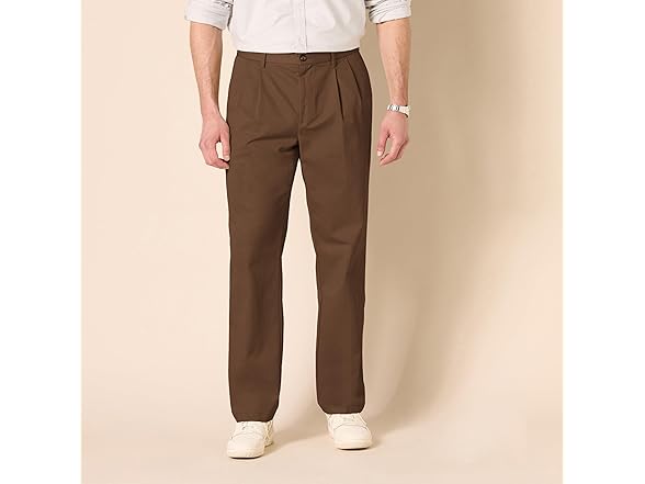 Mens ClassicFit Pleated Chino Brown (31Wx30L)