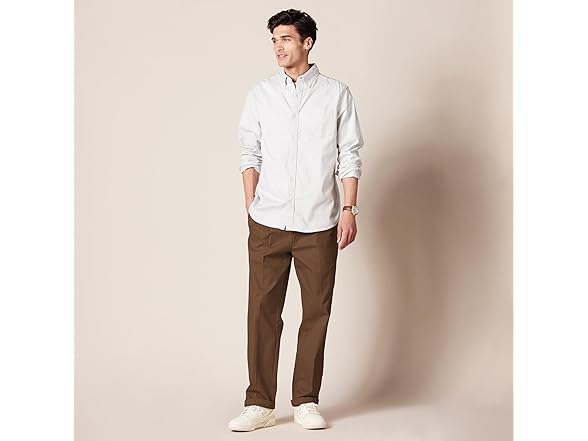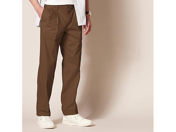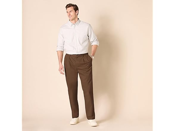 Mens ClassicFit Pleated Chino Brown (36Wx32L)